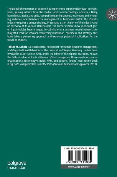 The global phenomenon of eSports has experienced exponential growth in recent years, gaining interest from the media, sports and technology industries. Being born digital, global and agile, competitive gaming appeals to a young and emerging audience, and therefore the management of businesses within the eSports industry requires a unique strategy. Presenting a short history of the industry and an overview of its various stakeholders, the author explores how important governing principles have emerged to culminate in a business model network. An insightful read for scholars researching innovation, eBusiness and strategy, this book takes a pioneering approach and examines potential implications for the future of eSports.