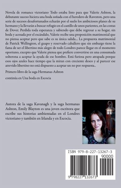 Novela de romance victoriano Todo estaba listo para que Valerie Ashton, la debutante suceso hiciera una boda soñada con el heredero de Raveston, pero una serie de sucesos desafortunados echarán por el suelo los ambiciosos planes de su hermano y la llevarán a buscar refugio en el castillo de unos parientes, en las costas de Dover. Perdida toda esperanza y sabiendo que debe regresar a su hogar, sin boda y acosada por el escándalo, Valerie recibe una proposición matrimonial que no piensa aceptar pero que sabe es su única salida... La propuesta matrimonial de Patrick Wellington, el guapo y reservado caballero que sin embargo tiene la fama de ser el libertino más alegre de todo Londres parece llegar en el momento oportuno, excepto que Valerie piensa que prefiere convertirse en una consumada solterona a aceptar la ayuda de ese hombre. Está furiosa pero atrapada porque esos ojos azules hace tiempo que la miran con creciente deseo y al parecer ese atrevido libertino no está dispuesto a aceptar un no por respuesta.. Primero libro de la saga Hermanas Ashton continúa en Una boda en Escocia