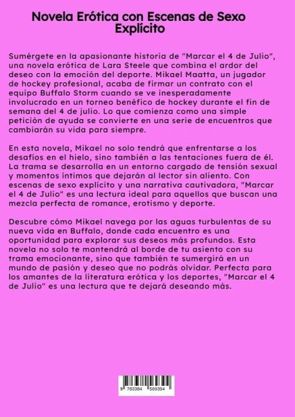 "Esposa en Alta Mar" de Lara Steele es una novela erótica que te sumerge en un viaje sensual y provocador a bordo de un crucero de lujo. La historia comienza con una escena cautivadora en la que el protagonista, recostado en su tumbona, disfruta de la vista desde detrás de sus gafas de sol, observando discretamente a las atractivas mujeres que pasan. Sin embargo, su atención se centra en su esposa, Melissa, quien, ajena a las miradas de admiración que despierta, luce un bikini rojo que resalta su belleza.La narrativa de Lara Steele es hábil y envolvente, capturando la tensión erótica y la dinámica entre los personajes con una prosa detallada y sugerente. La novela explora temas de deseo, confianza y la emoción de ser observado, todo ello enmarcado en el escenario exótico y lujoso de un crucero. A medida que la trama avanza, los lectores se encontrarán atrapados en un juego de seducción y descubrimiento, donde cada mirada y cada gesto están cargados de significado."Esposa en Alta Mar" no solo ofrece escenas de sexo explícito que elevan la temperatura, sino que también desarrolla una trama intrigante y personajes complejos que mantienen el interés del lector hasta la última página. Es una lectura perfecta para aquellos que buscan una mezcla de romance, erotismo y una pizca de misterio, todo ello ambientado en un entorno de ensueño. Ideal para los amantes de la novela erótica que desean una experiencia literaria que vaya más allá de lo convencional.