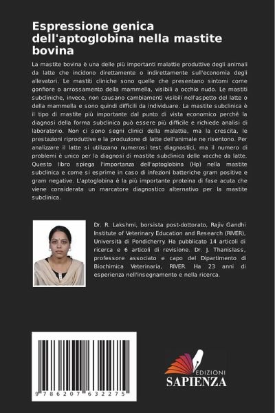 La mastite bovina è una delle più importanti malattie produttive degli animali da latte che incidono direttamente o indirettamente sull'economia degli allevatori. Le mastiti cliniche sono quelle che presentano sintomi come gonfiore o arrossamento della mammella, visibili a occhio nudo. Le mastiti subcliniche, invece, non causano cambiamenti visibili nell'aspetto del latte o della mammella e sono quindi difficili da individuare. La mastite subclinica è il tipo di mastite più importante dal punto di vista economico perché la diagnosi della forma subclinica può essere più difficile e richiede analisi di laboratorio. Non ci sono segni clinici della malattia, ma la crescita, le prestazioni riproduttive e la produzione di latte dell'animale ne risentono. Per analizzare il latte si utilizzano numerosi test diagnostici, ma il numero di problemi è unico per la diagnosi di mastite subclinica delle vacche da latte. Questo libro spiega l'importanza dell'aptoglobina (Hp) nella mastite subclinica e come si esprime in caso di infezioni batteriche gram positive e gram negative. L'aptoglobina è la più importante proteina di fase acuta che viene considerata un marcatore diagnostico alternativo per la mastite subclinica.