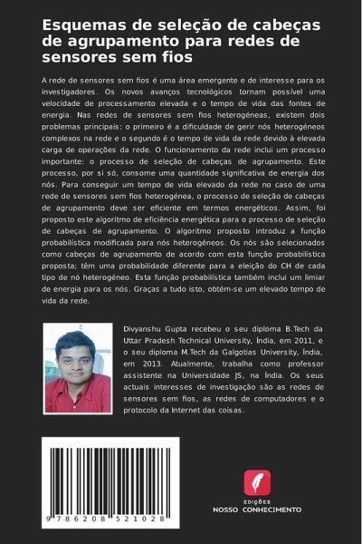A rede de sensores sem fios é uma área emergente e de interesse para os investigadores. Os novos avanços tecnológicos tornam possível uma velocidade de processamento elevada e o tempo de vida das fontes de energia. Nas redes de sensores sem fios heterogéneas, existem dois problemas principais: o primeiro é a dificuldade de gerir nós heterogéneos complexos na rede e o segundo é o tempo de vida da rede devido à elevada carga de operações da rede. O funcionamento da rede inclui um processo importante: o processo de seleção de cabeças de agrupamento. Este processo, por si só, consome uma quantidade significativa de energia dos nós. Para conseguir um tempo de vida elevado da rede no caso de uma rede de sensores sem fios heterogénea, o processo de seleção de cabeças de agrupamento deve ser eficiente em termos energéticos. Assim, foi proposto este algoritmo de eficiência energética para o processo de seleção de cabeças de agrupamento. O algoritmo proposto introduz a função probabilística modificada para nós heterogéneos. Os nós são selecionados como cabeças de agrupamento de acordo com esta função probabilística proposta; têm uma probabilidade diferente para a eleição do CH de cada tipo de nó heterogéneo. Esta função probabilística também inclui um limiar de energia para os nós. Graças a tudo isto, obtém-se um elevado tempo de vida da rede.