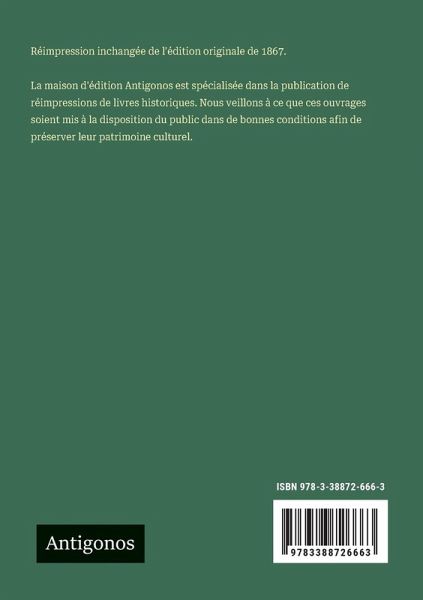 Réimpression inchangée de l'édition originale de 1867. La maison d'édition Antigonos est spécialisée dans la publication de réimpressions de livres historiques. Nous veillons à ce que ces ouvrages soient mis à la disposition du public dans de bonnes conditions afin de préserver leur patrimoine culturel.