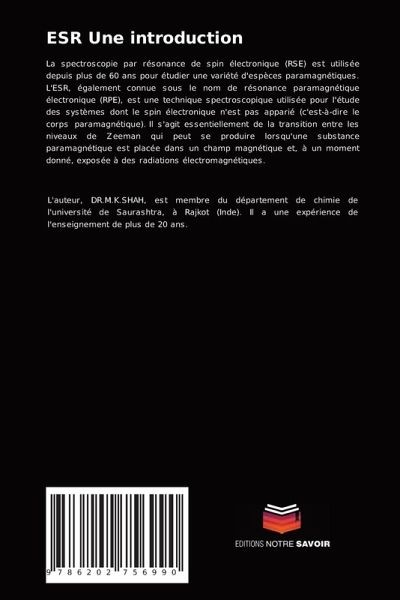 La spectroscopie par résonance de spin électronique (RSE) est utilisée depuis plus de 60 ans pour étudier une variété d'espèces paramagnétiques. L'ESR, également connue sous le nom de résonance paramagnétique électronique (RPE), est une technique spectroscopique utilisée pour l'étude des systèmes dont le spin électronique n'est pas apparié (c'est-à-dire le corps paramagnétique). Il s'agit essentiellement de la transition entre les niveaux de Zeeman qui peut se produire lorsqu'une substance paramagnétique est placée dans un champ magnétique et, à un moment donné, exposée à des radiations électromagnétiques.
