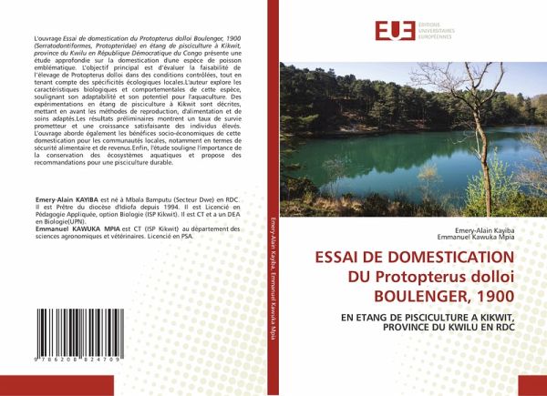 L'ouvrage Essai de domestication du Protopterus dolloi Boulenger, 1900 (Serratodontiformes, Protopteridae) en étang de pisciculture à Kikwit, province du Kwilu en République Démocratique du Congo présente une étude approfondie sur la domestication d'une espèce de poisson emblématique. L'objectif principal est d'évaluer la faisabilité de l'élevage de Protopterus dolloi dans des conditions contrôlées, tout en tenant compte des spécificités écologiques locales.L'auteur explore les caractéristiques biologiques et comportementales de cette espèce, soulignant son adaptabilité et son potentiel pour l'aquaculture. Des expérimentations en étang de pisciculture à Kikwit sont décrites, mettant en avant les méthodes de reproduction, d'alimentation et de soins adaptés.Les résultats préliminaires montrent un taux de survie prometteur et une croissance satisfaisante des individus élevés. L'ouvrage aborde également les bénéfices socio-économiques de cette domestication pour les communautés locales, notamment en termes de sécurité alimentaire et de revenus.Enfin, l'étude souligne l'importance de la conservation des écosystèmes aquatiques et propose des recommandations pour une pisciculture durable.