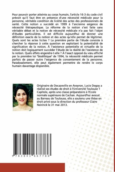 Pour pouvoir porter atteinte au corps humain, l'article 16-3 du code civil prévoit qu'il faut être en présence d'une nécessité médicale pour la personne, véritable condition de licéité des actes des professionnels de santé. Cette notion a succédé en 1999 à l'ancienne exigence de nécessité thérapeutique. La réforme de la notion s'est faite sans véritable débat et la notion de nécessité médicale n'a pas fait l'objet d'études particulières. Il est difficile aujourd'hui de donner une définition exacte de la notion et des actes qu'elle permet de légitimer. Quels sont les actes licites ? La première partie de l'étude consiste à chercher la réponse à cette question en exploitant la potentialité de signification de la notion. À l'existence potentielle et virtuelle de la notion doit logiquement succéder l'étude de la réalité de l'existence de la notion. Quels effets engendre-t-elle ? À l'exact opposé du voeu affiché par la première loi "bioéthique" de 1994, la nécessité médicale permet parfois de passer outre l'exigence de consentement de la personne. Paradoxalement, elle peut également permettre de rendre le corps humain davantage disponible.