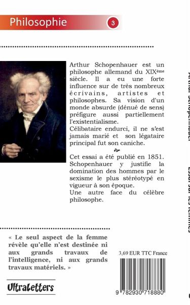 Cet essai a été publié en 1851. Schopenhauer y justifie la domination des hommes par le sexisme le plus stéréotypé en vigueur à son époque. Une autre face du célèbre philosophe.