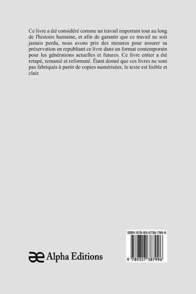 Essais et portraits, a été considérée comme importante tout au long de l'histoire de l'humanité. Dans un effort pour s'assurer que ce travail ne soit jamais perdu, nous avons pris des mesures pour assurer sa préservation en republiant ce livre dans un format moderne pour les générations actuelles et futures. Ce livre complet a été retapé, remanié et reformaté. Comme ces livres ne sont pas des scans des publications originales des auteurs, le texte est lisible et clair.