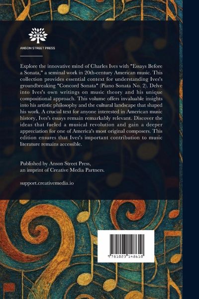 Explore the innovative mind of Charles Ives with "Essays Before a Sonata," a seminal work in 20th-century American music. This collection provides essential context for understanding Ives's groundbreaking "Concord Sonata" (Piano Sonata No. 2). Delve into Ives's own writings on music theory and his unique compositional approach. This volume offers invaluable insights into his artistic philosophy and the cultural landscape that shaped his work. A crucial text for anyone interested in American music history, Ives's essays remain remarkably relevant. Discover the ideas that fueled a musical revolution and gain a deeper appreciation for one of America's most original composers. This edition ensures that Ives's important contribution to music literature remains accessible. This work has been selected by scholars as being culturally important, and is part of the knowledge base of civilization as we know it. This work is in the public domain in the United States of America, and possibly other nations. Within the United States, you may freely copy and distribute this work, as no entity (individual or corporate) has a copyright on the body of the work. Scholars believe, and we concur, that this work is important enough to be preserved, reproduced, and made generally available to the public. We appreciate your support of the preservation process, and thank you for being an important part of keeping this knowledge alive and relevant.