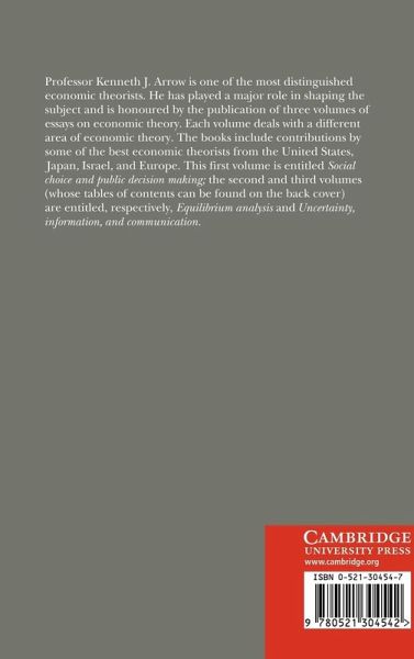 Professor Kenneth J. Arrow is one of the most distinguished economic theorists. He has played a major role in shaping the subject and is honoured by the publication of three volumes of essays on economic theory. Each volume deals with a different area of economic theory. The books include contributions by some of the best economic theorists from the United States, Japan, Israel and Europe.
