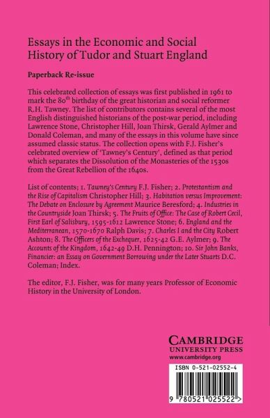 This celebrated collection of essays was first published in 1961 to mark the 80th birthday of the great historian and social reformer R. H. Tawney. The list of contributors contains several of the most English distinguished historians of the post-war period, including Lawrence Stone, Christopher Hill, Joan Thirsk, Gerald Aylmer and Donald Coleman, and many of the essays in this volume have since assumed classic status. The collection opens with F. J. Fisher's celebrated overview of 'Tawney's Century', defined as that period which separates the Dissolution of the Monasteries of the 1530s from the Great Rebellion of the 1640s.