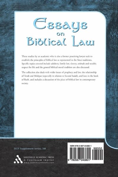These studies by an academic who is also a former practising lawyer seek to establish the principles of biblical law as represented in the Sinai traditions. Specific topics covered include adultery, family law, slavery, animals and wealth; respect for life and the general biblical moral tradition are also discussed. The collection also deals with wider issues of prophecy and law, the relationship of torah and mishpat (especially in relation to Second Isaiah), and laws in the book of Ruth, and includes a discussion of the place of biblical law in contemporary society.