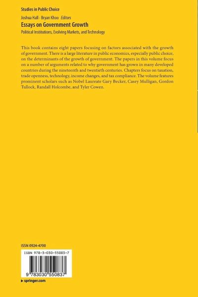 This book contains eight papers focusing on factors associated with the growth of government. There is a large literature in public economics, especially public choice, on the determinants of the growth of government. The papers in this volume focus on a number of arguments related to why government has grown in many developed countries during the nineteenth and twentieth centuries. Chapters focus on taxation, trade openness, technology, income changes, and tax compliance. The volume features prominent scholars such as Nobel Laureate Gary Becker, Casey Mulligan, Gordon Tullock, Randall Holcombe, and Tyler Cowen.