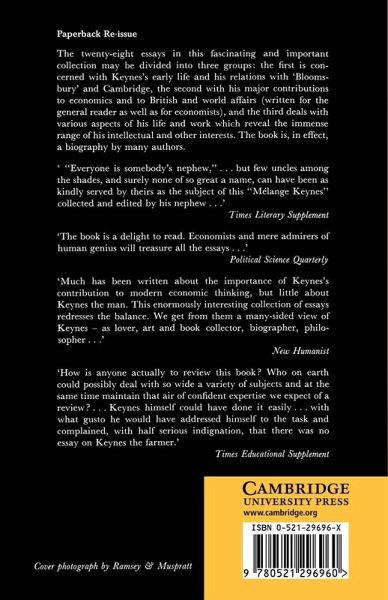 The twenty-eight essays in this fascinating and important collection may be divided into three groups: the first is concerned with Keynes's early life and his relations with 'Bloomsbury' and Cambridge, the second with his major contributions to economics and to British and world affairs, and the third deals with various aspects of his life and work which reveal the immense range of his intellectual and other interests.