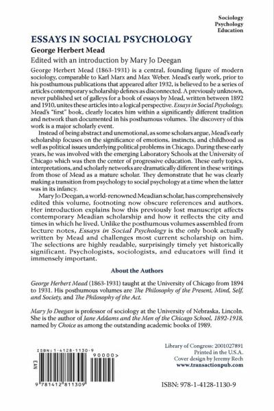 George H. Mead (1863-1931) is a central, founding figure of modern sociology, comparable to Karl Marx and Max Weber. Mead's early work, prior to his posthumous publications that appeared after 1932, is believed to be a series of articles contemporary scholarship defines as disconnected