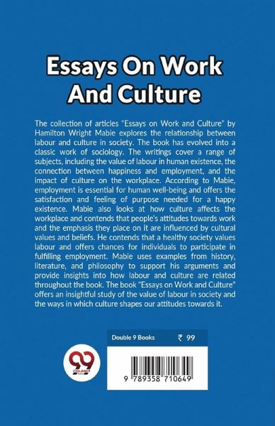The collection of articles "Essays on Work and Culture" by Hamilton Wright Mabie explores the relationship between labour and culture in society. The book has evolved into a classic work of sociology. The writings cover a range of subjects, including the value of labour in human existence, the connection between happiness and employment, and the impact of culture on the workplace. According to Mabie, employment is essential for human well-being and offers the satisfaction and feeling of purpose needed for a happy existence. Mabie also looks at how culture affects the workplace and contends that people's attitudes towards work and the emphasis they place on it are influenced by cultural values and beliefs. He contends that a healthy society values labour and offers chances for individuals to participate in fulfilling employment. Mabie uses examples from history, literature, and philosophy to support his arguments and provide insights into how labour and culture are related throughout the book. The book "Essays on Work and Culture" offers an insightful study of the value of labour in society and the ways in which culture shapes our attitudes towards it.