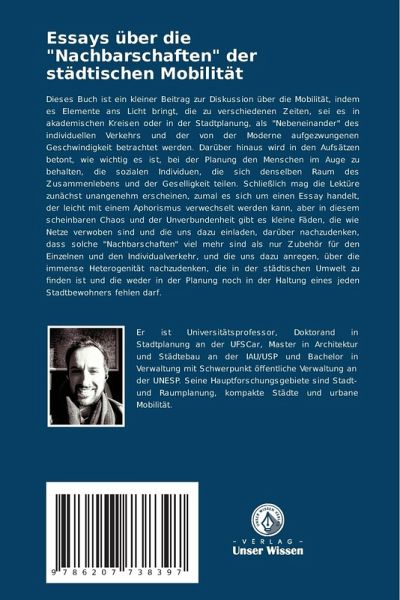 Dieses Buch ist ein kleiner Beitrag zur Diskussion über die Mobilität, indem es Elemente ans Licht bringt, die zu verschiedenen Zeiten, sei es in akademischen Kreisen oder in der Stadtplanung, als "Nebeneinander" des individuellen Verkehrs und der von der Moderne aufgezwungenen Geschwindigkeit betrachtet werden. Darüber hinaus wird in den Aufsätzen betont, wie wichtig es ist, bei der Planung den Menschen im Auge zu behalten, die sozialen Individuen, die sich denselben Raum des Zusammenlebens und der Geselligkeit teilen. Schließlich mag die Lektüre zunächst unangenehm erscheinen, zumal es sich um einen Essay handelt, der leicht mit einem Aphorismus verwechselt werden kann, aber in diesem scheinbaren Chaos und der Unverbundenheit gibt es kleine Fäden, die wie Netze verwoben sind und die uns dazu einladen, darüber nachzudenken, dass solche "Nachbarschaften" viel mehr sind als nur Zubehör für den Einzelnen und den Individualverkehr, und die uns dazu anregen, über die immense Heterogenität nachzudenken, die in der städtischen Umwelt zu finden ist und die weder in der Planung noch in der Haltung eines jeden Stadtbewohners fehlen darf.