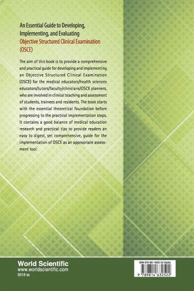 The aim of this book is to provide a comprehensive and practical guide for developing and implementing an Objective Structured Clinical Examination (OSCE) for the medical educators/health sciences educators/tutors/faculty/clinicians/OSCE planners, who are involved in clinical teaching and assessment of students, trainees and residents. The book starts with the essential theoretical foundation before progressing to the practical implementation steps. It contains a good balance of medical education research and practical tips to provide readers an easy to digest, yet comprehensive, guide for the implementation of OSCE as an appropriate assessment tool.