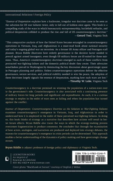 Counterinsurgency is a doctrine premised on winning the population of a nation-state over to the government's side. Counterinsurgency is also associated with a continuing presence of military forces for long periods and significant aid expenditures. As such, it is a curious strategy to employ in the midst of wars seen as failing and when the population has turned against the conflict. This book examines counterinsurgency's emergence in Vietnam, Iraq, and Afghanistan in order to understand how it is employed in the midst of these perceived war fighting failures. In doing so, it thinks of strategy as narrative that describes how actions will result in better future effects. In so doing, this book traces the ways in which the strategy making process overcomes fragmentation to produce consensus. It concludes that through the examination of how actors, analogies, and narratives are produced and deployed into strategy debates, the reasons for counterinsurgency's emergence in crisis periods can be determined. This approach enables a better understanding of the dynamics of policy-making and how geostrategic change occurs.