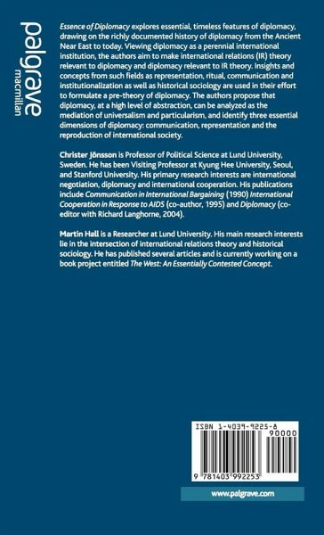 Essence of Diplomacy explores the essential, timeless features of diplomacy, drawing on the historical record of over three millennia. In their effort at making international relations (IR) theory relevant to diplomacy, and diplomacy relevant to IR theory, the authors identify three essential dimensions of diplomacy: communication, representation and the reproduction of international society.