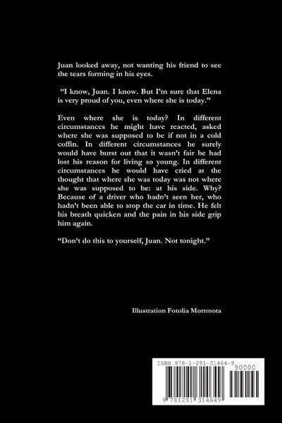 Juan looked away, not wanting his friend to see the tears forming in his eyes. "I know, Juan. I know. But I'm sure that Elena is very proud of you, even where she is today." Even where she is today? In different circumstances he might have reacted, asked where she was supposed to be if not in a cold coffin. In different circumstances he surely would have burst out that it wasn't fair he had lost his reason for living so young. In different circumstances he would have cried at the thought that where she was today was not where she was supposed to be: at his side. Why? Because of a driver who hadn't seen her, who hadn't been able to stop the car in time. He felt his breath quicken and the pain in his side grip him again. "Don't do this to yourself, Juan. Not tonight."