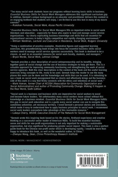 Many social workers find themselves in management positions within a few years of graduating from MSW programs. Most of these jobs are in nonprofit human service organizations in which, increasingly, business acumen is necessary to maintain grants and donations, start new programs, market services to clients, supervise the finance function, and understand the external environment. This book teaches MSW students and early-stage social work management practitioners the essential business skills needed to manage programs and organizations; to improve their overall management toolkit for finding a better job or getting promoted; and, ultimately, to gain parity with other managers holding MBA degrees and working in the human service space. This text can serve as a desk reference for managers to troubleshoot various situations. It is also appropriate for social work macro practice courses at the undergraduate and graduate levels, as well as courses that cover human resource management and financial management.¿