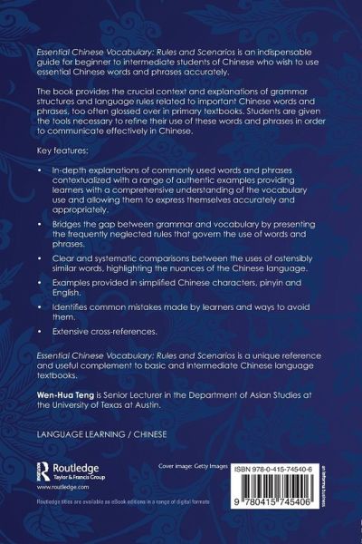 Essential Chinese Vocabulary: Rules and Scenarios is a unique reference and useful complement to basic and intermediate Chinese language textbooks.