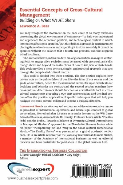 You may recognize the statement on the back cover of so many textbooks concerning the global environment of commerce-"to help you understand and appreciate the economic, political, and technological context in which international business operates." But this defined approach is tantamount to placing three wheels on a car and expecting it to drive smoothly. It cannot be operated without the balance that a fourth one provides, and that required wheel is culture. The author believes, in this modern era of globalization, managers venturing forth to engage alien societies must be armed with cross-cultural skills that go above and beyond the instructions of how to kiss, bow, or shake hands. This book provides a more concise, simple, and practical approach that cuts through the complicated cultural matrix. This book is divided into three sections. The first section explains how culture acts as the prime driver of our life-the filter of our senses and the guide of our values, hence the measurement barometer upon which all our decisions and behavior are constructed; the second section examines how cross-cultural determinants should function as a worthwhile tool in cross-cultural engagement proposing a two-step concentration; and the final section offers the practical application of specific techniques that will help you navigate the cross-cultural milieu and become a cultural detective.