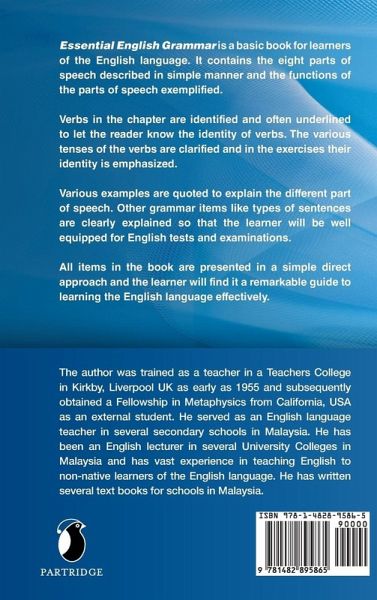 Essential English Grammar is a basic book for learners of the English language. It contains the eight parts of speech described in simple manner and the functions of the parts of speech exemplified. Verbs in the chapter are identified and often underlined to let the reader know the identity of verbs. The various tenses of the verbs are clarified and in the exercises their identity is emphasized. Various examples are quoted to explain the different part of speech. Other grammar items like types of sentences are clearly explained so that the learner will be well equipped for English tests and examinations. All items in the book are presented in a simple direct approach and the learner will find it a remarkable guide to learning the English language effectively.