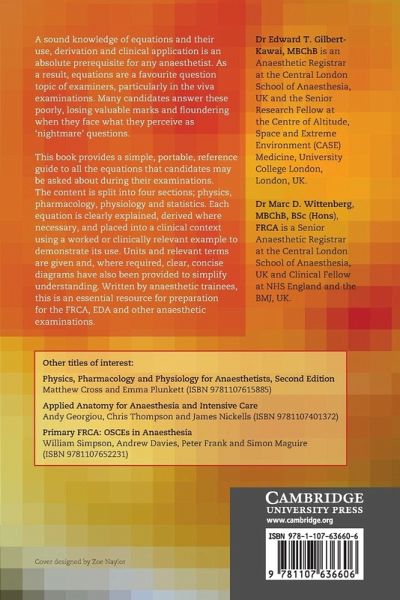 Written for candidates preparing for postgraduate anaesthesia examinations, this book concisely covers all of the relevant equations that may come up in questions. Each equation is simply explained and put into a clinical context, with a worked example or clinical application, and derivations provided where necessary.