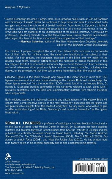 For millions of people throughout the world, the Hebrew Bible functions as the foundation of their faith. For millions more, the same book functions as the subject of their studies. For both groups, the characters discussed in the Bible lend key insight to the lessons found there. However, sifting through the hundreds of names mentioned in this key religious text to find information about one figure can be tedious and time-consuming, and most reference guides either provide only brief, unhelpful entries on every character, including minor figures, or are so extensive that they can be more intimidating than the original text. Essential Figures in the Bible compiles thorough but manageable entries on the figures most vital to an understanding of the Bible and its teachings. In this valuable reference, Dr. Ronald L. Eisenberg catalogs and explains the importance of more than 250 figures who are most vital to an understanding of the Hebrew Bible and its teachings. For these figures selected from the more than 3,000 names found in the Hebrew Bible, Eisenberg provides summaries of the narratives relevant to each figure discussed along with illustrative quotations from the Bible and supplementary material from rabbinic literature when appropriate. Both religious studies and rabbinical students and casual readers of the Hebrew Bible will benefit from the comprehensive entries on the most-frequently discussed biblical figures and will gain valuable insights from this reader-friendly text. Complete in a single volume, this guide strikes a satisfying balance between the sparse, uninformative books and comprehensive but overly complex references that are currently the only places for inquisitive Bible readers to turn. For any reader who wishes to gain a better understanding of the Bible, Eisenberg's text is just as "essential" as the figures listed within.