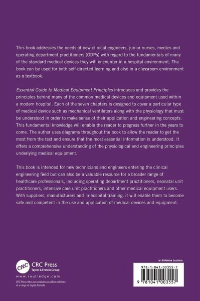 This book addresses the needs of new clinical engineers, junior nurses, medics and operating department practitioners (ODPs) with regard to the fundamentals of many of the standard medical devices they will encounter in a hospital environment. The book can be used for both self-directed learning and in a classroom environment as a textbook.