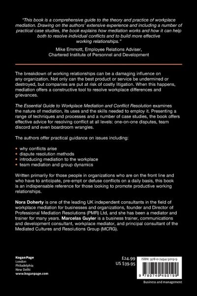 The Essential Guide to Workplace Mediation and Conflict Resolution examines the nature, process, uses and skills for employing and using mediation. The authors examine what mediation is and how it can be successfully applied to resolve issues, by presenting a range of techniques and case studies. Applicable to not only one-on-one conflict, but also at team and board room level, this is the book for you whether you are in the front line and have to anticipate, pre-empt or defuse conflicts in support of productive working relationships, are already a mediator or are training to become one.