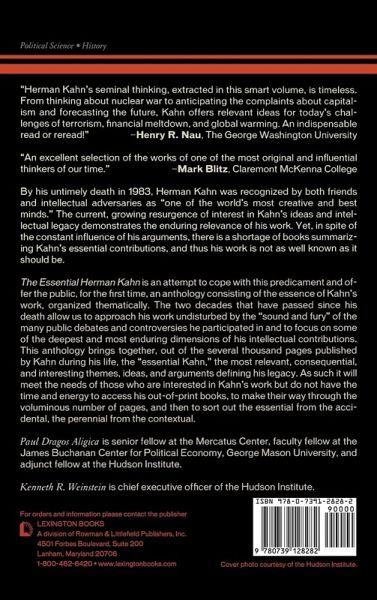 The Essential Herman Kahn offers the public for the first time an anthology consisting of the best of Herman Kahn's work. It brings together, out of the several thousands of pages published in his life, the "essential Kahn"-the most relevant, consequential, and interesting themes, ideas, and arguments of his work in areas such as international relations, public policy, environmentalism, strategic thinking, and futurology.