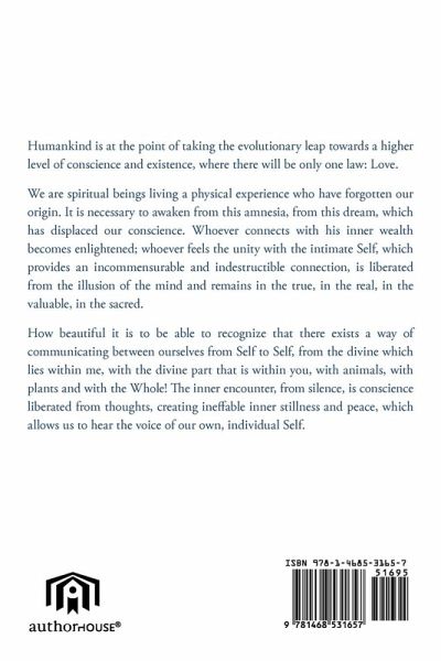 Humankind is at the point of taking the evolutionary leap towards a higher level of conscience and existence, where there will be only one law: Love. We are spiritual beings living a physical experience who have forgotten our origin. It is necessary to awaken from this amnesia, from this dream, which has displaced our conscience. Whoever connects with his inner wealth becomes enlightened; whoever feels the unity with the intimate Self, which provides an incommensurable and indestructible connection, is liberated from the illusion of the mind and remains in the true, in the real, in the valuable, in the sacred. How beautiful it is to be able to recognize that there exists a way of communicating between ourselves from Self to Self, from the divine which lies within me, with the divine part that is within you, with animals, with plants and with the Whole! The inner encounter, from silence, is conscience liberated from thoughts, creating ineffable inner stillness and peace, which allows us to hear the voice of our own, individual Self.