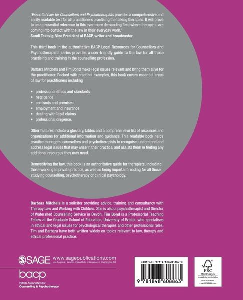 "Essential Law for Counsellors and Psychotherapists provides a comprehensive and easily readable text for all practitioners practising the talking therapies. It will prove to be an essential reference in this ever more demanding field where therapists are coming into contact with the law in their every day work." - Sandi Toksvig, Vice President of BACP, writer and broadcaster