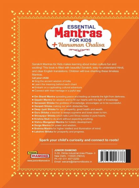 Sanskrit Mantras for Kids makes learning about Indian culture fun and exciting! This book is filled with beautiful Sanskrit, easy-to-understand Hindi, and clear English translations. Children will love chanting these timeless Mantras. Let your child: Sing the ancient wisdom of India Learn the meaning behind each chant Embark on a captivating cultural adventure Connect with their heritage in a joyful way Om Shanti Mantra spreading peace and leading us towards the light from darkness. Gayatri Mantra for wisdom and to fill our hearts with the light of knowledge. Saraswati Shloka the goddess of knowledge, encourages us to be successful. Ganpati Shloka making our work obstacles free. Deep Jyoti Shloka for our prosperity, good health and wealth. Guru Shloka a teacher is always supreme and bows down to him. Shivayajur Shloka which tells Lord Shiva resides in pure hearts. Krishna Stuti to do work without expecting anything. Vishnu Mangalam Mantra for holistic development. Durga Mantra for power and wisdom. Brahma Mantra for higher intellect and illumination of mind. Lakshmi Shloka for prosperity and progress. Spark your child's curiosity and connect to roots!