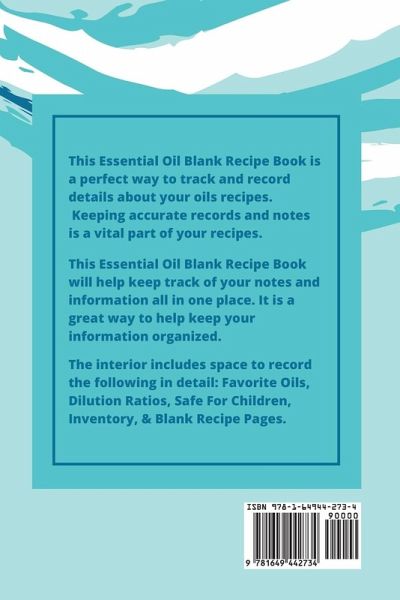 This Essential Oil Blank Recipe Journal is filled with custom pages for you to record all your important information and methods about your oils. There is a space to write:Favorite Oils Dilution Ratios Safe Essential Oils For Children Inventory Recipe Pages There's ample room for recipes. Each recipe page includes oil names, benefits, number of drops, and journaling any notes you want to write. This aromatherapy recipe notebook will make a good and easy way to find and reference your most used and loved blends in one convenient place. Using essential oils is natural medicine. Use it to keep track and document while making your personal blends to sell or just for you. Writing your own recipes has never been easier! Also makes the best gift for anyone who loves creating their own oils recipes, men and women alike! Quality paperback. Comes in white paper, black ink, matte finish cover, 94 pages. Designed at the perfect size of 6x9 inch to carry with you wherever you need to go. Grab your copy now!