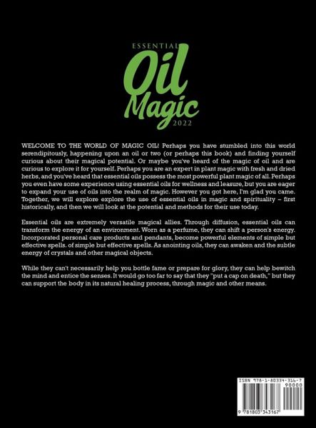 WELCOME TO THE WORLD OF MAGIC OIL! Perhaps you have stumbled into this world serendipitously, happening upon an oil or two (or perhaps this book) and finding yourself curious about their magical potential. Or maybe you've heard of the magic of oil and are curious to explore it for yourself. Perhaps you are an expert in plant magic with fresh and dried herbs, and you've heard that essential oils possess the most powerful plant magic of all. Perhaps you even have some experience using essential oils for wellness and pleasure, but you are eager to expand your use of oils into the realm of magic. However you got here, I'm glad you came. Together, we will explore explore the use of essential oils in magic and spirituality - first historically, and then we will look at the potential and methods for their use today. Essential oils are extremely versatile magical allies. Through diffusion, essential oils can transform the energy of an environment. Worn as a perfume, they can shift a person's energy. Incorporated personal care products and pendants, become powerful elements of simple but effective spells. of simple but effective spells. As anointing oils, they can awaken and the subtle energy of crystals and other magical objects.While they can't necessarily help you bottle fame or prepare for glory, they can help bewitch the mind and entice the senses. It would go too far to say that they "put a cap on death," but they can support the body in its natural healing process, through magic and other means.
