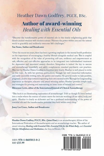 "An illuminating exploration of aromatherapy!" Janey Lee Grace, Author and Broadcaster In a world where mental health challenges are on the rise, Essential Oils to Ease Anxiety: The Alchemist's Guide to Serenity offers a beacon of hope and clarity. This ground-breaking guide, the fourth installment in an award-winning series on essential oils, combines decades of academic research, hands-on practice, and deep experiential insight to provide an indispensable resource for anyone seeking natural remedies for anxiety and emotional wellbeing. "Over the recent ten years, there has been a growing emphasis in the mental health profession on the importance of encouraging a healthy lifestyle alongside medical care. This is coupled with the recognition of the value of promoting self-care, resilience and empowerment as safe, effective and cost-effective approaches to be integrated into individualised treatment for depression and associated anxiety disorders. Integration is indeed the key to success and aromatherapy beautifully and safely complements standard psychiatric care practices. This text by Heather Dawn Godfrey is therefore very timely. Heather is well placed to write on this topic. As with her previous publications, through her well researched information and easily accessible writing style, she guides and enables the general reader to take positive, pragmatic, doable steps towards improving their own mental health. Through her longstanding experience as therapist, educator and award-winning author, Heather provides simple tools and strategies for priming and maintaining an inner locus of balance and control." Rhiannon Lewis, editor of the International Journal of Clinical Aromatherapy