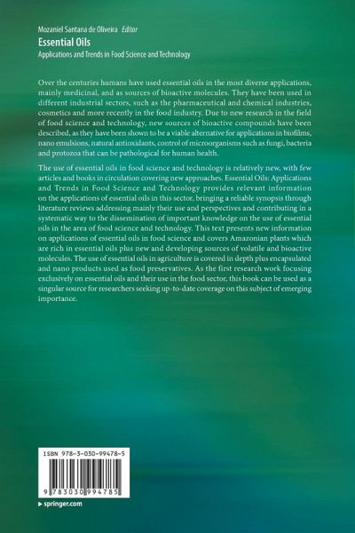 The use of essential oils in food science and technology is relatively new, with few articles and books in circulation covering new approaches. Essential Oils: Applications and Trends in Food Science and Technology provides relevant information on the applications of essential oils in this sector, bringing a reliable synopsis through literature reviews addressing mainly their use and perspectives and contributing in a systematic way to the dissemination of important knowledge on the use of essential oils in the area of food science and technology. This text presents new information on applications of essential oils in food science and covers Amazonian plants which are rich in essential oils plus new and developing sources of volatile and bioactive molecules. The use of essential oils in agriculture is covered in depth plus encapsulated and nano products used as food preservatives. As the first research work focusing exclusively on essential oils and their use in the food sector, this book can be used as a singular source for researchers seeking up-to-date coverage on this subject of emerging importance.
