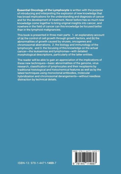 1 Cancer Biology.- Development of Cancers from Single Cells.- Diversity of Tumour Cells.- Differentiation of Malignant Cells.- 2 Derangement of the Genome as a Cause of Cancer.- The Chromosomes.- Chromosomal Abnormalities in Cancer.- Susceptibility to Chromosome Damage and Cancer.- Constitutional Cytogenetic Abnormalities.- Fragile Sites.- 3 Derangements of the Mechanisms Controlling Growth.- Cell Cycle.- Signal Transduction.- Immortalisation and Transformation.- Mechanisms Leading to Autonomous Growth.- Differentiation Arrest.- 4 Multiple Steps in the Genesis of a Cancer.- Initiation.- Promotion.- Progression.- Conclusions.- 5 Multifactorial Aetiology of Cancers.- Population and Familial Factors.- Carcinogens.- Radiation.- Viruses.- Viruses in the Causation of Animal Cancers.- Viruses in the Causation of Human Cancers.- Immunodepression and Immunosuppression.- Prolonged Antigenic Stimulation.- 6 Oncogenes.- Translation Products of Oncogenes.- Oncogene Products with Protein Kinase Activity.- GTP-binding Oncogene Products.- Oncogenes Whose Products Bind to DNA.- Oncogene Product with Growth Factor Activity.- Oncogenes Encoding Receptors for Growth Factors.- Oncogenes Whose Products have Undefined Function.- Some Important Non-human Oncogenes.- Aberrations of Oncogenes in Cancer.- Proteins Homologous to Oncogene Products.- Transgenic Mice.- Oncogenes in Human Tumours.- Multiple Oncogene Expression.- Conclusions.- 7 Growth Factors.- Mechanisms of Action of Growth Factors.- Growth Factors in Malignant Transformation.- Growth Factors for Haematopoietic Cells.- Chalones and Other Antiproliferative Factors.- Conclusions.- 8 The Lymphoid Tissues.- Origin of Lymphocytes.- T Lymphocytes.- B Lymphocytes.- NK, ADCC and Lymphokine-activated Killer Cells.- Accessory Cells.- Activation of Macrophages.- Lymphoid Organs and Immunological Function.- Lymphocyte Circulation.- Organisation of Immunological Function.- 9 The Major Histocompatibility Complex.- Tissue Distribution of MHC Products.- MHC Gene Products and Their Specificities.- Immunoregulatory Function of the MHC.- Mixed Lymphocyte Reaction.- Graft Versus Host Reaction.- Association of Diseases with MHC Phenotype.- Conclusions.- 10 T Cell Differentiation.- The Thymus.- T Lymphocytes in Bone Marrow.- T Cells in Lymph Nodes.- T Cell Subsets.- T Cell Receptor.- Genetic Mechanisms in T Cell Differentiation.- T Cell Activation.- Signal Transduction in T Cell Activation.- 11 B Cell Differentiation.- Antigen-independent B Cell Differentiation.- B Lymphocyte Differentiation in Postnatal Life.- Antigen-dependent B Cell Differentiation.- B Cell Subsets.- Immunoglobulin.- Genetic Mechanisms in B Cell Differentiation.- 12 B Cell Activation.- T Cells in B Cell Activation.- Accessory Cells in B Cell Activation.- B Cell Activation by Cross-linking Immunoglobulin.- Soluble Factors in B Cell Activation.- Cellular Events in B Lymphocyte Activation.- Conclusions.- 13 Immunoregulatory Mechanisms.- Systems Controlling Immunological Function.- Suppressor Mechanisms.- Idiotypes.- Immunological Tolerance.- Regulatory Mechanisms in B Cell Malignancies.- 14 Technology of Investigation and Diagnosis.- Hybridoma Technology and Monoclonal Antibodies.- Gene Cloning.- Gene Probing.- Immunodiagnostic Methods.- Immunological Methods.- Immunohistochemical Methods.- Histochemical Stains.- Flow Cytometry.- Ultrastructural Analysis.- Conclusions.- 15 B Cell Neoplasia.- Immunological Abnormalities in Lymphoid Malignancies.- Chromosomal Abnormalities in B Cell Malignancies.- Oncogene Activation in B Cell Neoplasia.- Immunoglobulin Gene Rearrangements.- 16 B Cell Leukaemias.- Acute Lymphoblastic Leukaemia.- B-Chronic Lymphocytic Leukaemia.- B Cell Prolymphocytic Leukaemia.- Hairy Cell Leukaemia.- Chronic Cold Agglutinin Disease.- Lymphoplasmacytoid Lymphoma.- Plasma Cell Dyscrasias.- 17 B Cell Lymphomas.- B Cell Lymphomas of the Deep Cortex.- B Cell Lymphomas of the Superficial Cortex.- B Cell Lymphomas of the Medulla: Plasmacytoma.- Undifferentiated B Cell Lymphomas.- Extranodal B Cell Lymphomas.- Hodgkin's Disease.- 18 T Cell Neoplasia.- Chromosomal Abnormalities in T Cell Malignancies.- Gene Rearrangements in T Cell Malignancies.- 19 T Cell Leukaemias and Lymphomas.- T Cell Neoplasms of the Bone Marrow Compartment.- T Cell Neoplasms of the Thymic Compartment.- T Cell Neoplasms of the Peripheral Compartment.- 20 Treatment, Treatment Failure and Future Possibilities.- Treatment Failure Exemplified by Lymphocytic Leukaemia.- Immunotherapy.- Cytokines and Other Biological Agents.- New Drugs and Other Treatments.- Conclusions.
