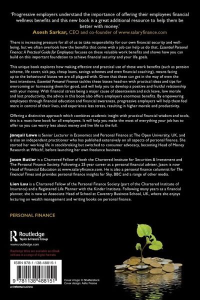 Jonquil Lowe is Senior Lecturer in Economics and Personal Finance at The Open University, UK, and is also an independent practitioner who has published extensively on all aspects of personal finance. She started her working life in stockbroking but switched to consumer advocacy, becoming Head of Money Research at Which?, before launching her own freelance business. Jason Butler is a Chartered Fellow of both the Chartered Institute for Securities & Investment and The Personal Finance Society. Following a 25-year career as a personal financial adviser, Jason is now Head of Financial Education at www.salaryfinance.com. He is also a personal finance columnist for The Financial Times and provides personal finance insights for Sky, BBC and a range of other media. Lien Luu is a Chartered Fellow of the Personal Finance Society (part of the Chartered Institute of Insurance) and a Registered Life Planner with the Kinder Institute. Following many years as a financial planner, she is now an Associate Head of School at Coventry Business School, UK, where she enjoys lecturing on wealth management and writing books on personal finance.