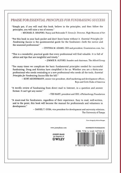 Essential Principles for Fundraising Success is a single-source, easy-access guide that offers answers to the most commonly asked questions posed by professional fundraisers and volunteers. Organized in a clear, easy-to-use question and answer format, Essential Principles for Fundraising Success takes on the challenges that arise daily in the ongoing, high-pressured business of raising money. In this book, G. Douglass Alexander and Kristina Carlson (the founders of the successful Internet-based, fundraising consulting firm FundraisingINFO) offer insight from their combined forty-six years of experience working with thousands of nonprofit organizations. Based on the enduring principles of fundraising, this important resource shows how to master the three mainstays of fundraising-developing a case statement, creating a campaign strategy, and securing big gifts. Essential Principles for Fundraising Success also offers creative, out-of-the-box solutions for convincing reluctant board members and other stakeholders to follow proven, effective fundraising strategies