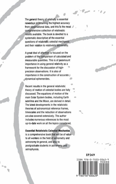 Essential Relativistic Celestial Mechanics presents a systematic exposition of the essential questions of relativistic celestial mechanics and their relation to relativistic astrometry. The book focuses on the comparison of calculated and measurable quantities that is of paramount importance in using general relativity as a necessary framework in the discussion of high-precision observations and for the construction of accurate dynamical ephemerides. It discusses the results of the general relativistic theory of motion of celestial bodies and describes the relativistic theory of astronomical reference frames, time scales, and the reduction of observations.