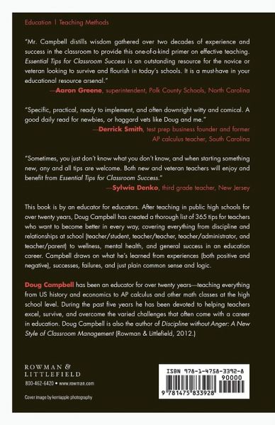 This is a book of 365 tips for teachers covering 12 areas applicable to the teaching profession: discipline, mental health, wellness, success, wisdom, relationships (teacher/teacher, teacher/student, teacher/admin, teacher/parent), advice for administrators, discipline myths, and coaching.