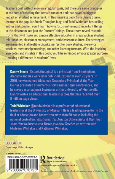 Teachers deal with change on a regular basis, but there are some principles at the core of teaching that remain constant and that have the biggest impact on student achievement. In this inspiring book from Danny Steele, creator of the popular Steele Thoughts blog, and Todd Whitaker, bestselling author and speaker, you'll learn how to focus on the most important things in the classroom, not just the "current" things. The authors reveal essential truths that will make you a more effective educator in areas such as student relationships, classroom management, and classroom culture. The strategies are presented in digestible chunks, perfect for book studies, in-service sessions, mentorship meetings, and other learning formats. With the inspiring anecdotes and insights in this book, you'll be reminded of your greater purpose - making a difference in students' lives.