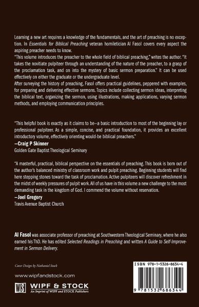 Learning a new art requires a knowledge of the fundamentals, and the art of preaching is no exception. In Essentials for Biblical Preaching veteran homiletician Al Fasol covers every aspect the aspiring preacher needs to know. ""This volume introduces the preacher to the whole field of biblical preaching,"" writes the author. ""It takes the novitiate pulpiteer through an understanding of the nature of the preacher, to a grasp of the proclamation task, and on into the mystery of basic sermon preparation."" It can be used effectively on either the graduate or the undergraduate level. After surveying the history of preaching, Fasol offers practical guidelines, peppered with examples, for preparing and delivering effective sermons. Topics include collecting sermon ideas, interpreting the biblical text, organizing the sermon, using illustrations, making applications, varying sermon methods, and employing communication principles.