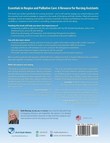 This book was written specifically for nursing assistants! It will warmly engage you and provide you with the essential tools and knowledge to respond to the needs of the dying and their families. Filled with practical strategies, stories of caregiving, and real-life scenarios, Essentials in Hospice and Palliative Care will increase your confidence, competence and comfort in providing compassionate care for the dying.