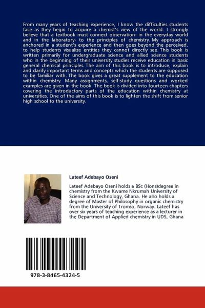 From many years of teaching experience, I know the difficulties students face as they begin to acquire a chemist s view of the world. I strongly believe that a textbook must connect observation- in the everyday world and in the laboratory- to the principles of chemistry. My approach is anchored in a student s experience and then goes beyond the perceived, to help students visualize entities they cannot directly see. This book is written primarily for undergraduate science and allied science students who in the beginning of their university studies receive education in basic general chemical principles. The aim of this book is to introduce, explain and clarify important terms and concepts which the students are supposed to be familiar with. The book gives a great supplement to the education within chemistry. Many assignments, self-study questions and worked examples are given in the book. The book is divided into fourteen chapters covering the introductory parts of the education within chemistry at universities. One of the aims of this book is to lighten the shift from senior high school to the university.