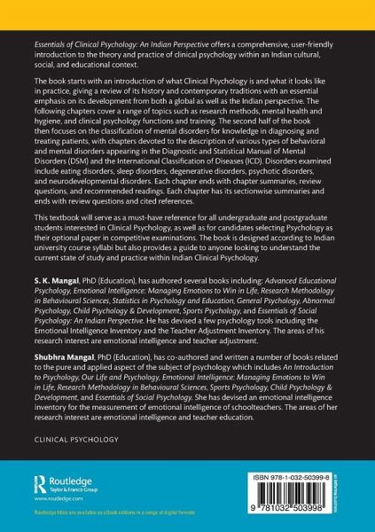 Essentials of Clinical Psychology: An Indian Perspective offers a user-friendly comprehensive introduction to the theory and practice of clinical psychology within an Indian cultural, social, and educational context.